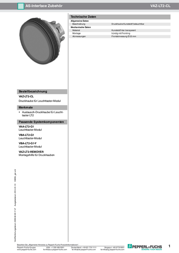 Pepperl+Fuchs 108054 Pokrywa VAZ-LT2-CL 1 szt.