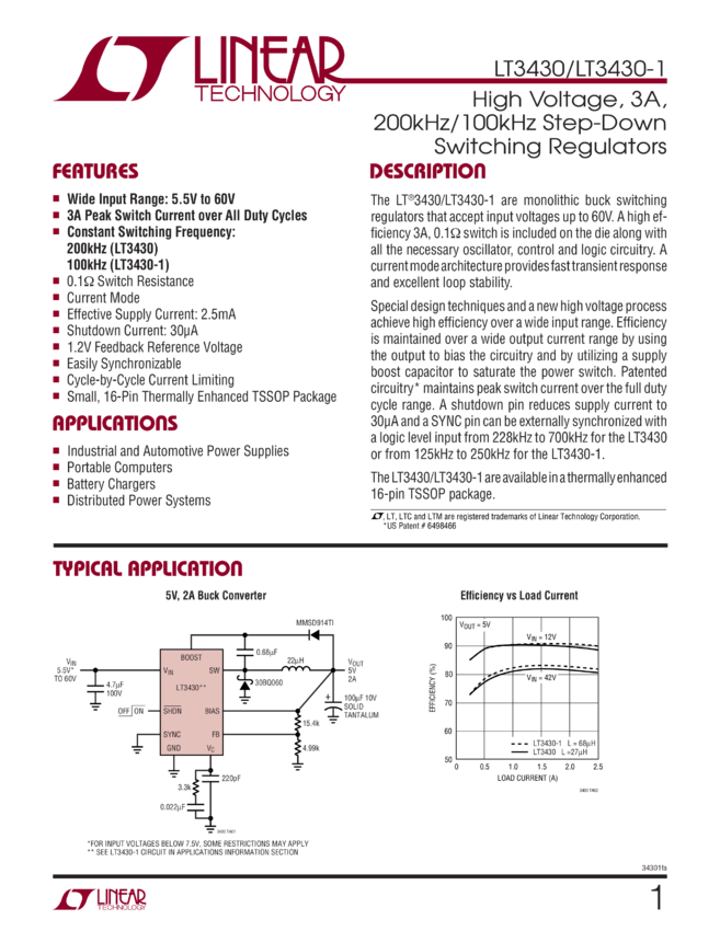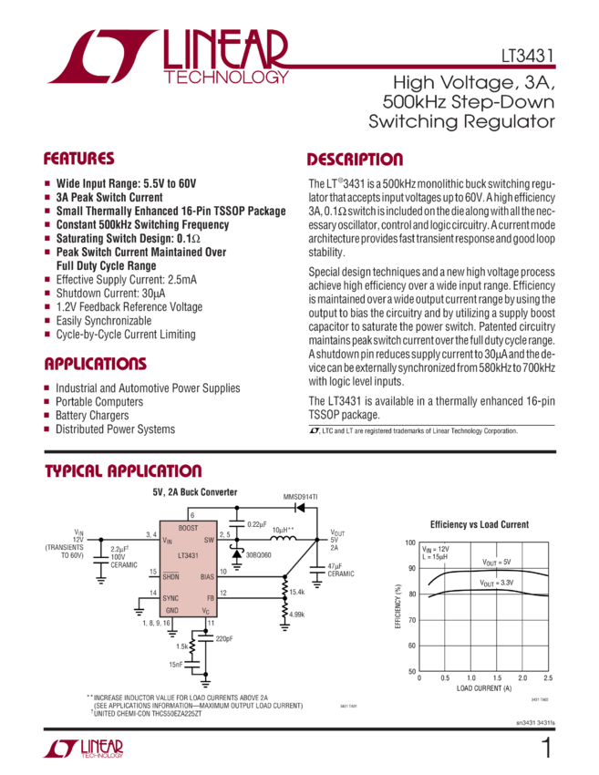 High Voltage, 3A, 200kHz Step-Down Switching Regulator