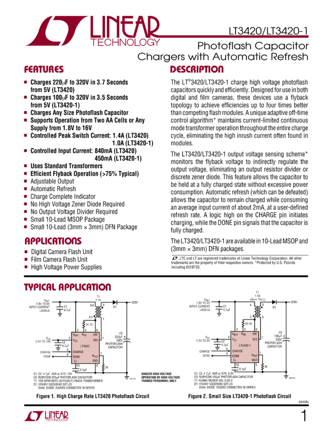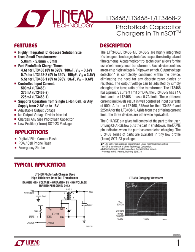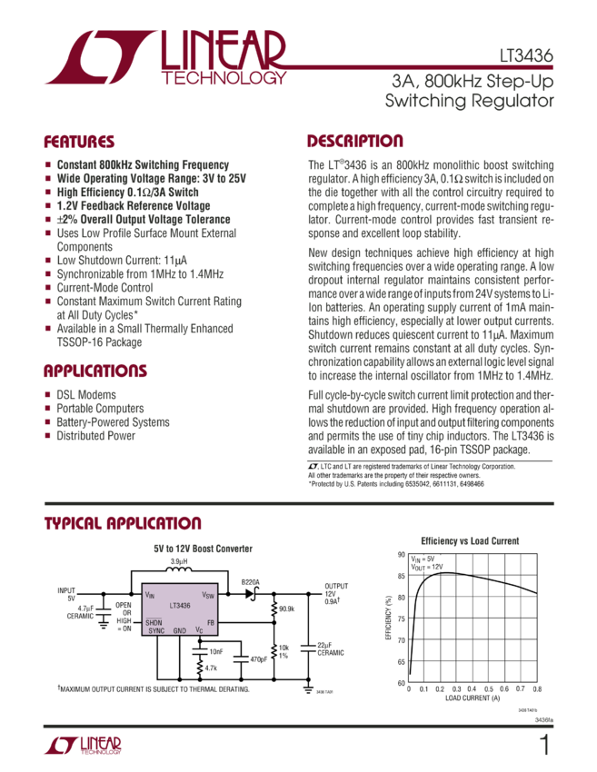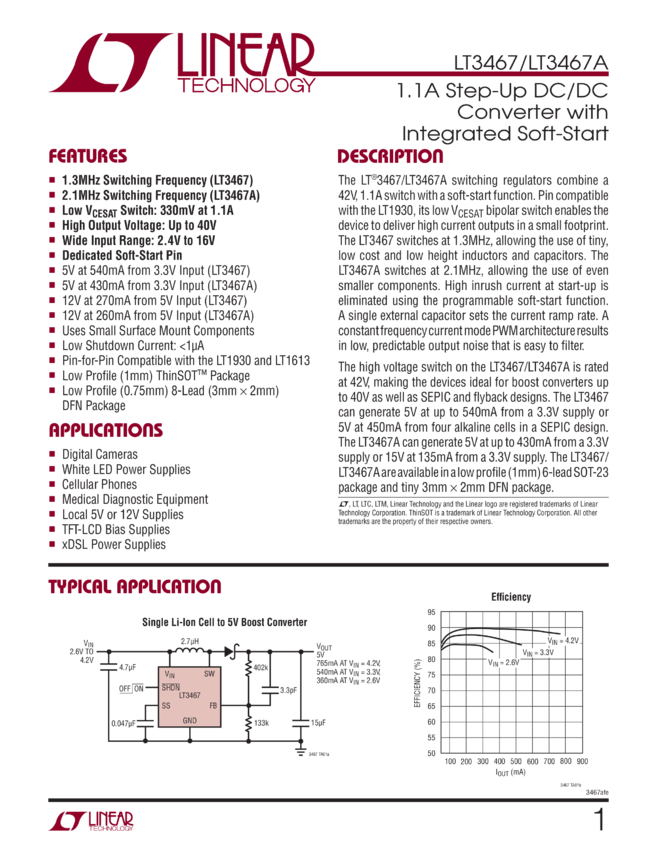 1.3MHz Step-Up DC/DC Converters with Integrated Schottky in ThinSOT