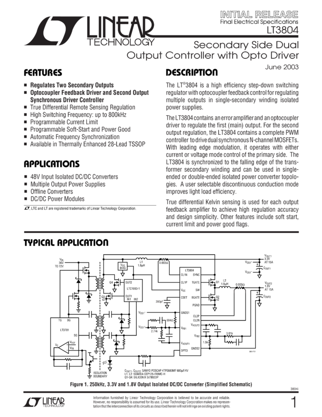 Slew Rate Controlled Ultralow Noise 1A Isolated DC/DC Transformer Driver