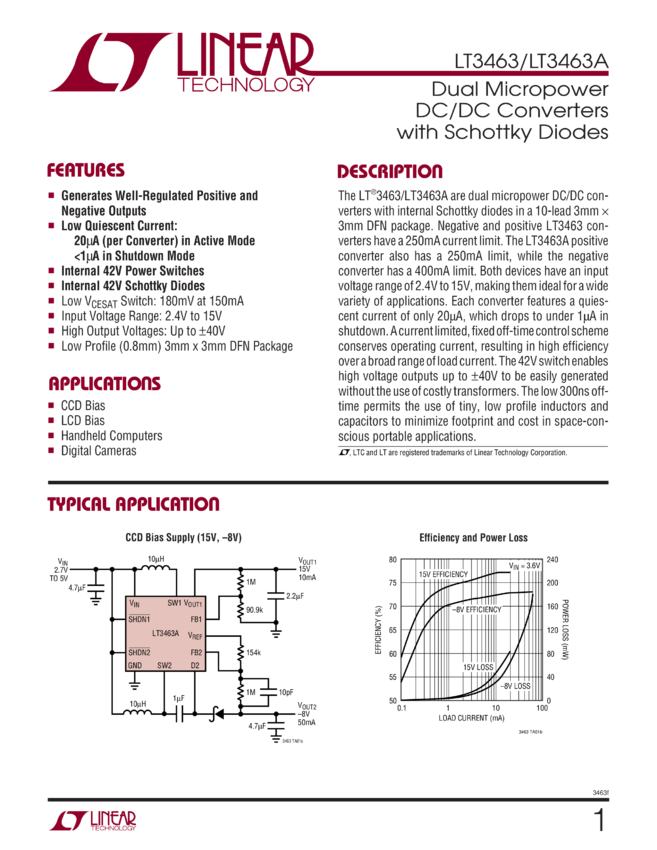 Dual Micropower DC/DC Converters with Schottky Diodes