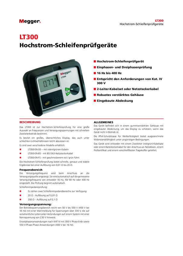 Tester VDE Megger LT300-EN-FS Kalibracja (ISO)