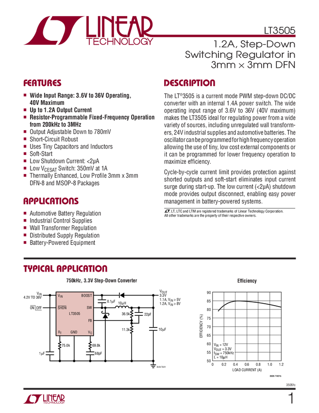 1.2A, Step-Down Switching Regulator in 3mm × 3mm DFN