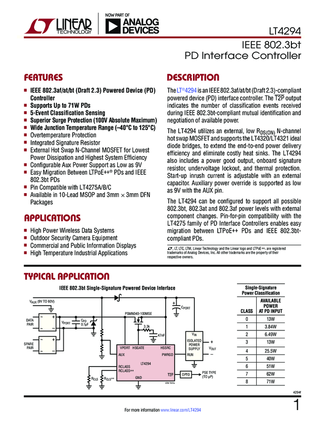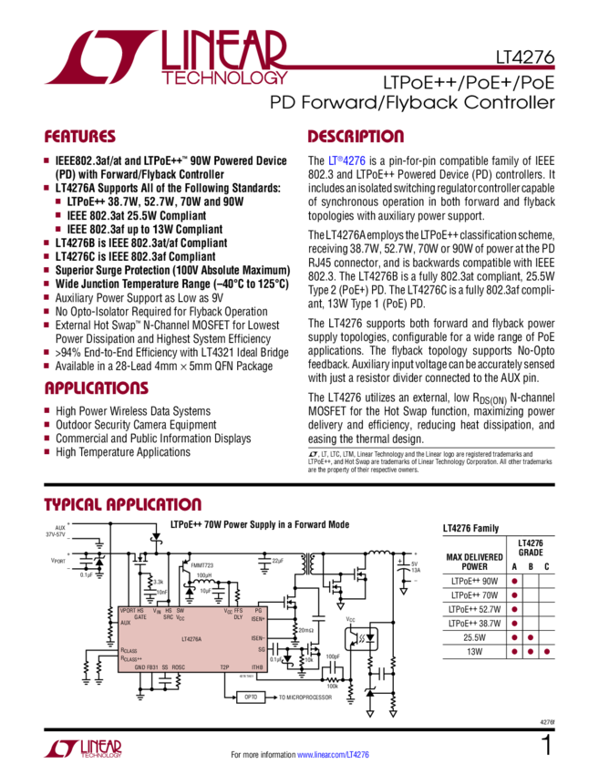 LTPoE++/PoE+/PoE PD Forward/Flyback Controller