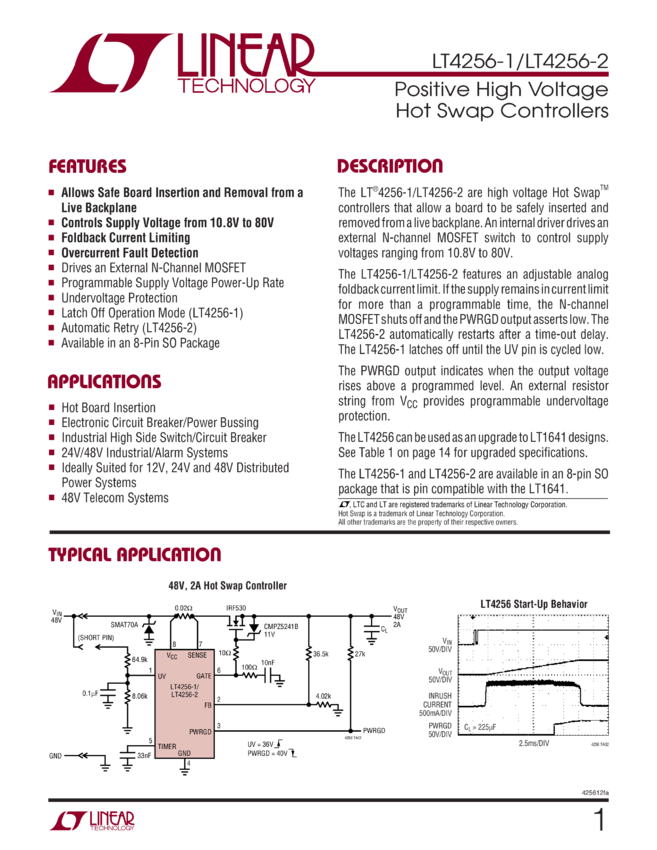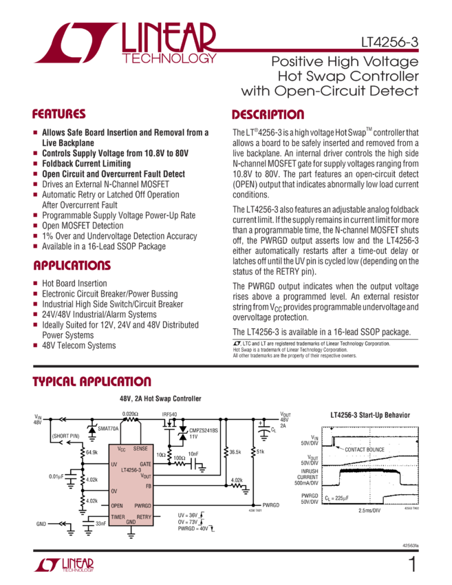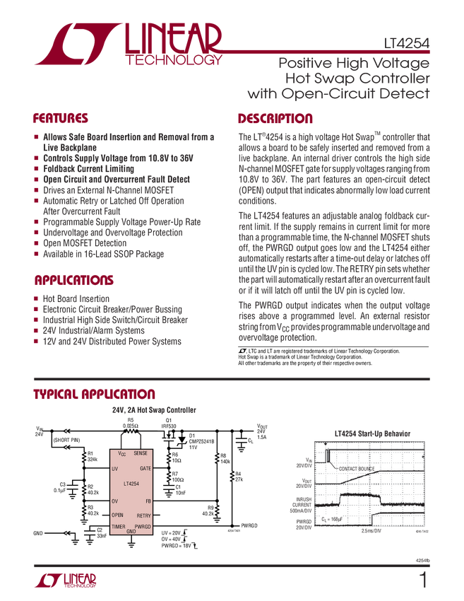 Positive High Voltage Hot Swap Controller with Open-Circuit Detect
