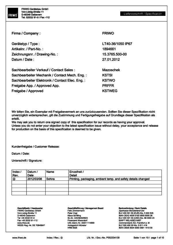 Zasilacz FRIWO do LED LT40-24/1460, stałoprądowy 1460mA, Uwy 10-24V, z funkcją stałonapięciową 24 VDC, moc 35W, IP20