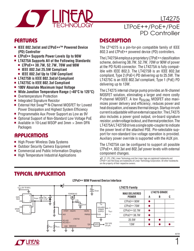 LTPoE++/PoE+/PoE PD Controller