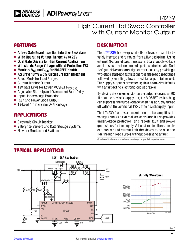 High Current Hot Swap Controller with Current Monitor Output