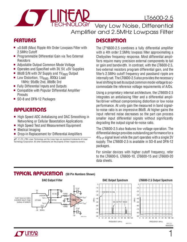Very Low Noise, Differential Amplifi er and 2.5MHz Lowpass Filter
