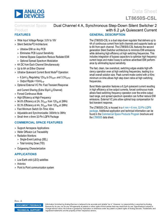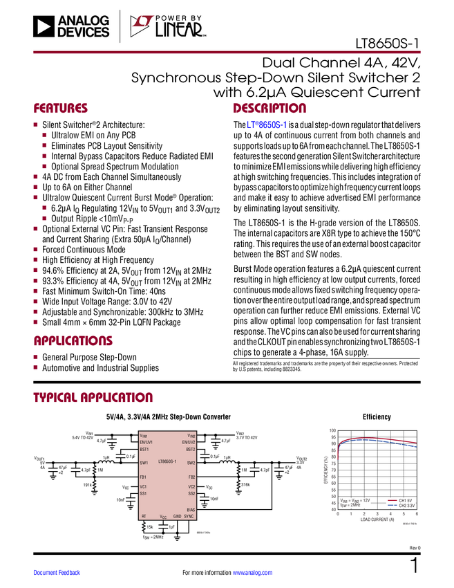 Dual Channel 6A, 42V, Synchronous Step-Down Silent Switcher 2 with 6.2μA Quiescent Current