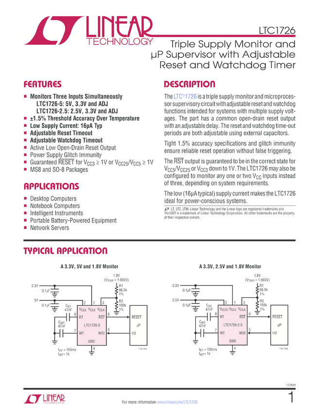 Triple Supply Monitor and µP Supervisor with Adjustable Reset and Watchdog Timer