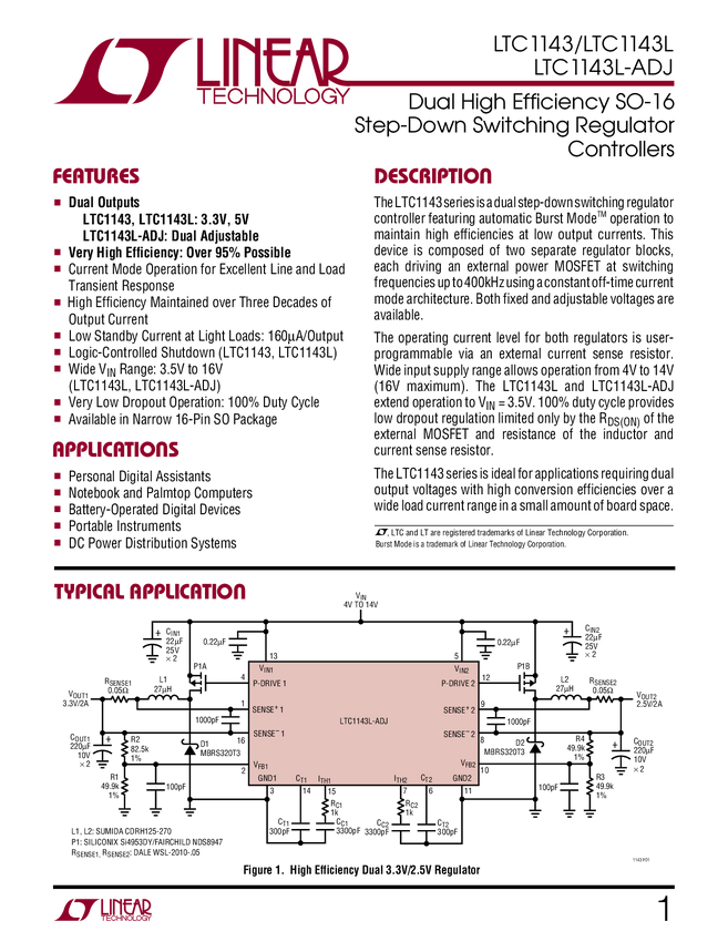 Dual High Efficiency SO-16 Step-Down Switching Regulator Controllers