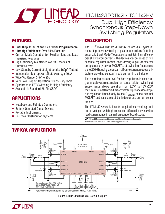 Dual High Efficiency Synchronous Step-Down Switching Regulators