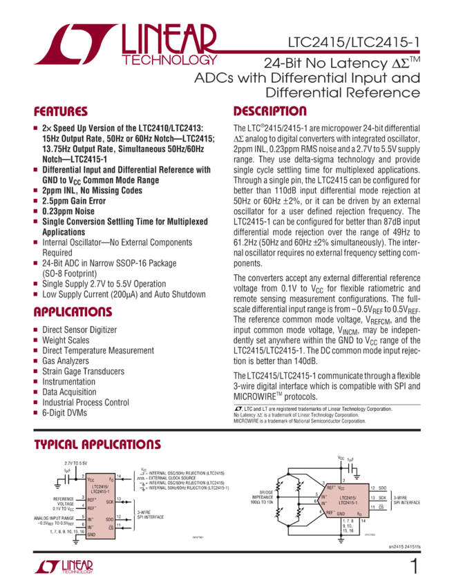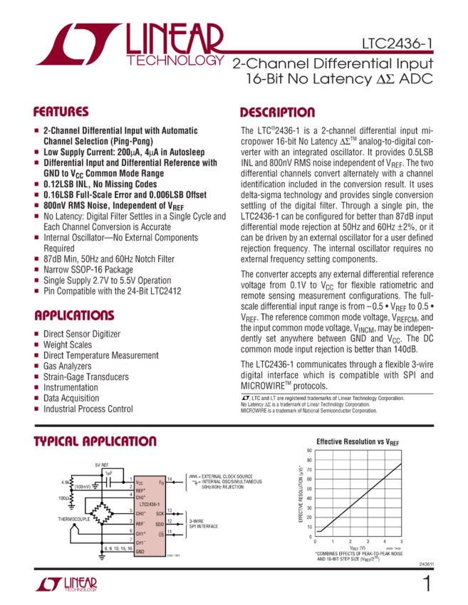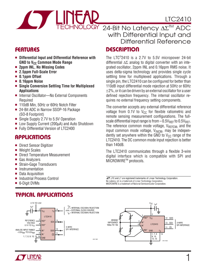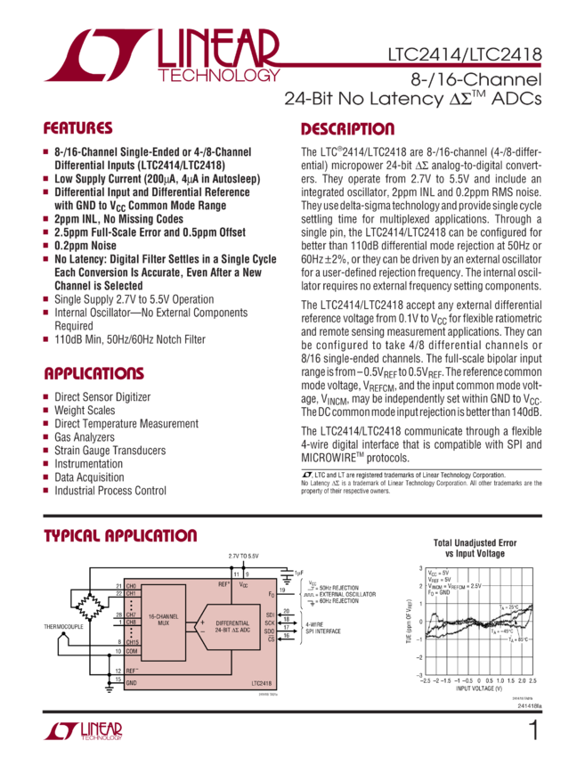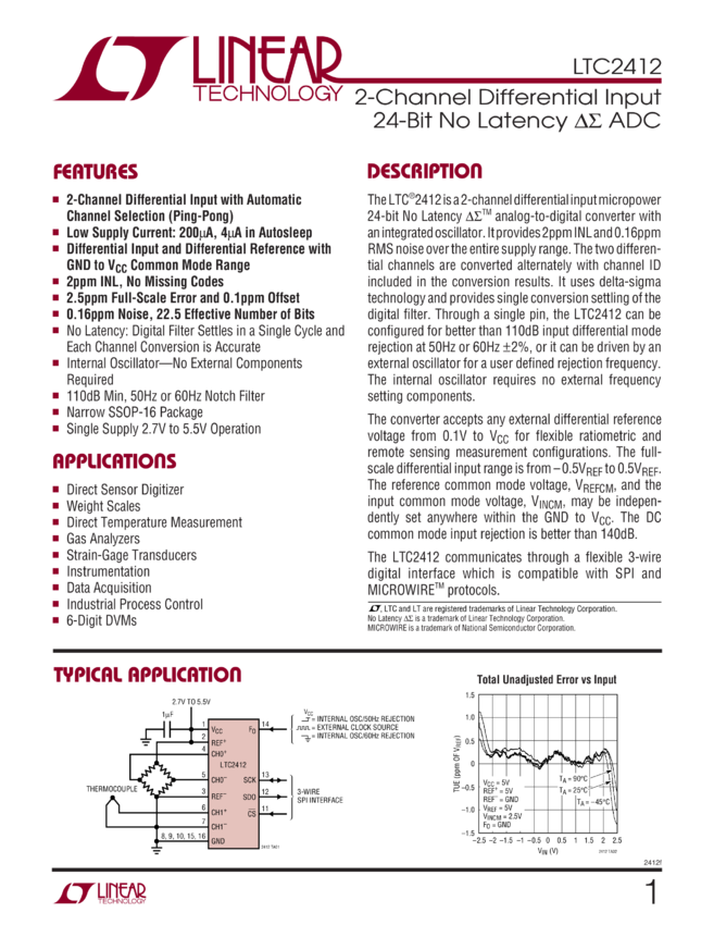 24-Bit No Latency Delta Sigma ADC with Simultaneous 50Hz/60Hz Rejection ADC,