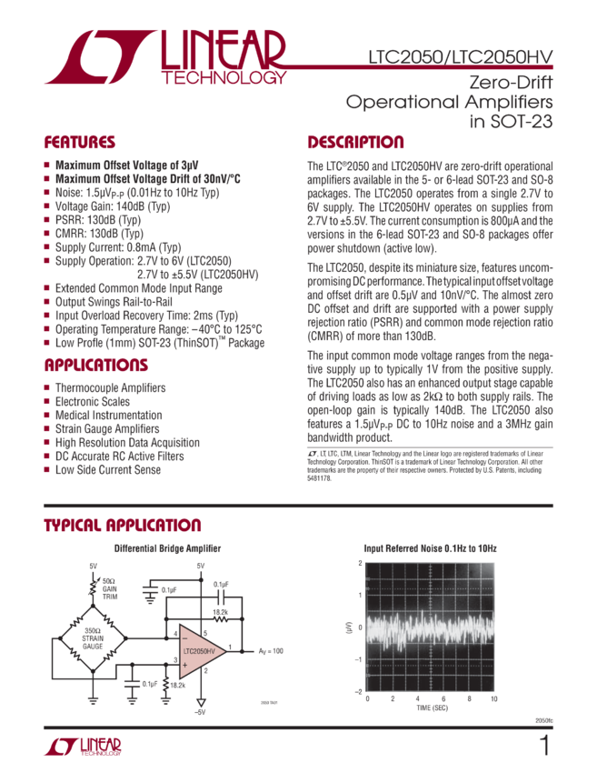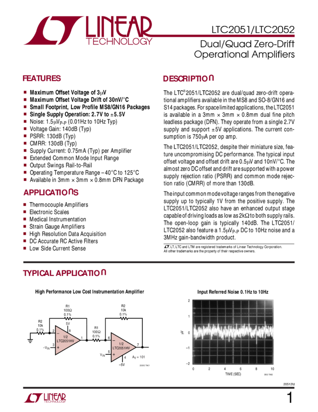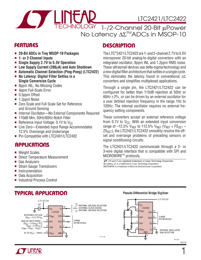 1-/2-Channel 20-Bit µPower No Latency Delta Sigma ADCs in MSOP-10