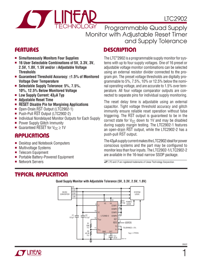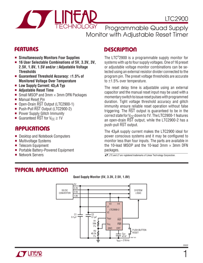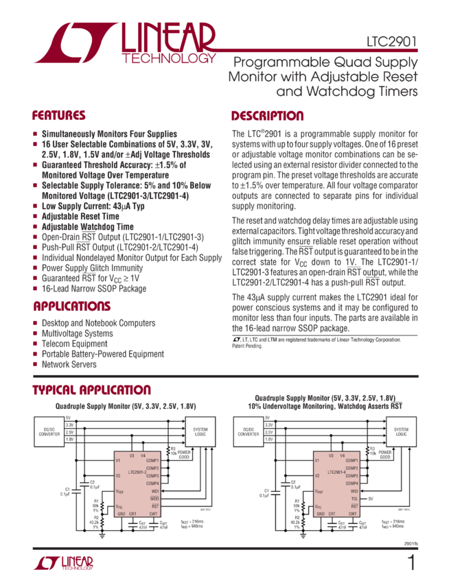 Programmable Quad Supply Monitor with Adjustable Reset and Watchdog Timers