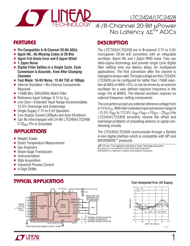 4-/8-Channel 20-Bit µPower No Latency Delta-Sigma ADC