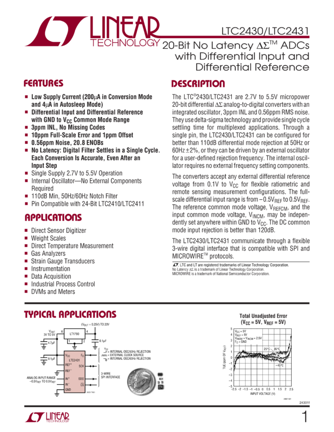 20-Bit No Latency Delta Sigma ADCs with Differential Input and Differential Reference