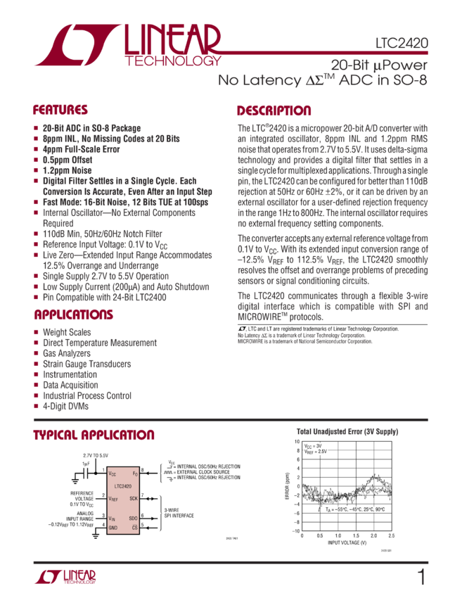 20-Bit µPower No Latency Delta-Sigma ADC in SO-8