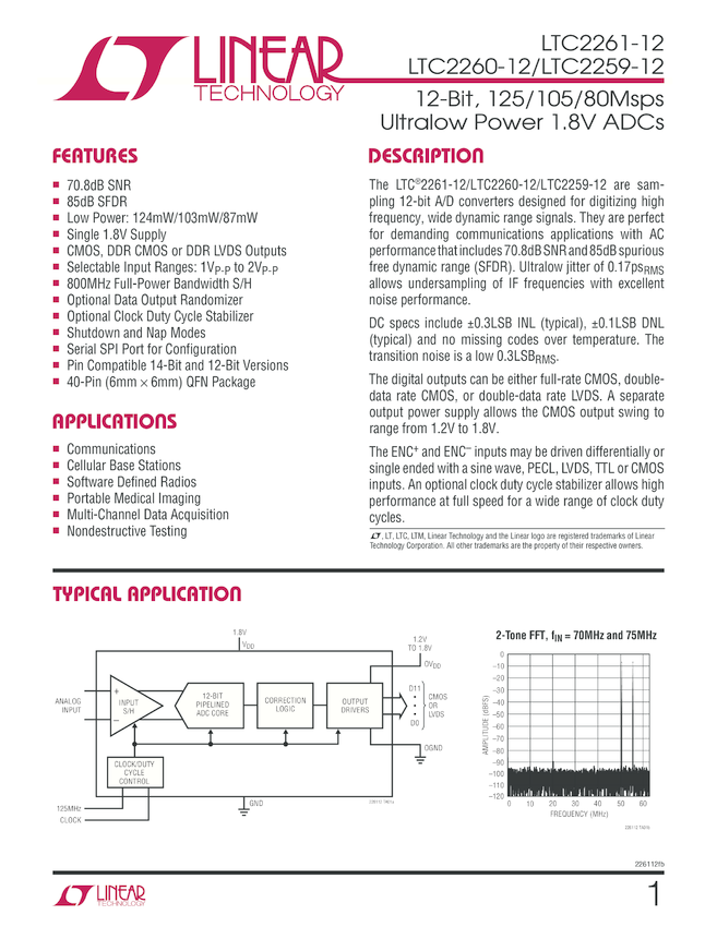12-Bit, 80Msps Ultralow Power 1.8V ADCs