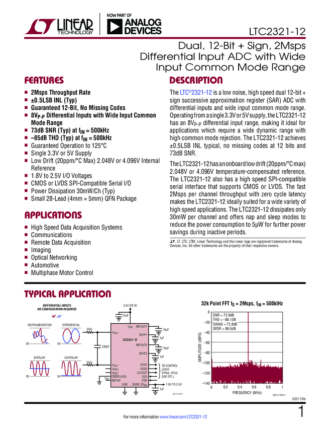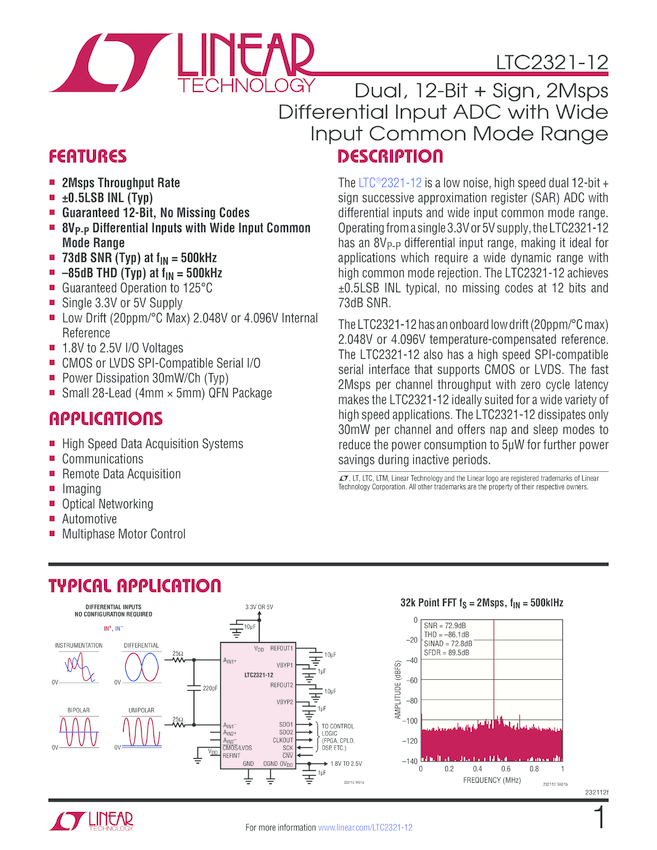 Dual, 12-Bit + Sign, 2Msps Differential Input ADC with Wide Input Common Mode Range