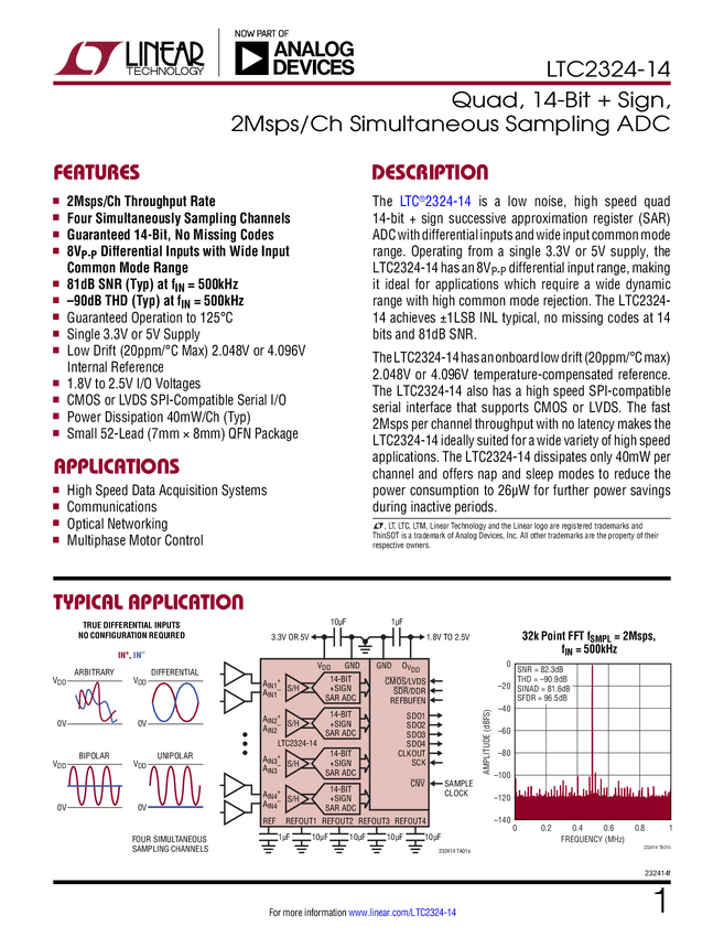 Quad, 14-Bit + Sign, 2Msps/Ch Simultaneous Sampling ADC