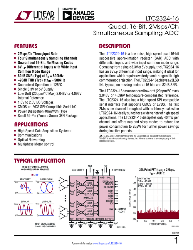 Quad, 16-Bit, 2Msps/Ch Simultaneous Sampling ADC