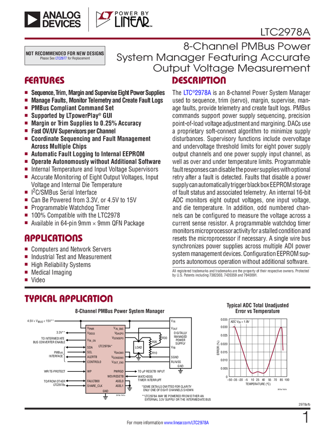 8-Channel PMBus Power System Manager Featuring Accurate Output Voltage Measurement