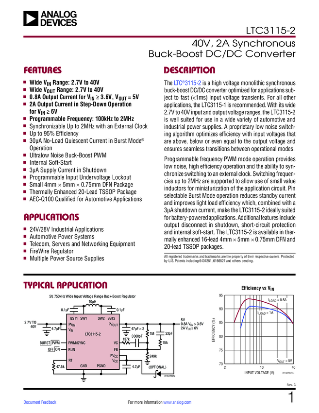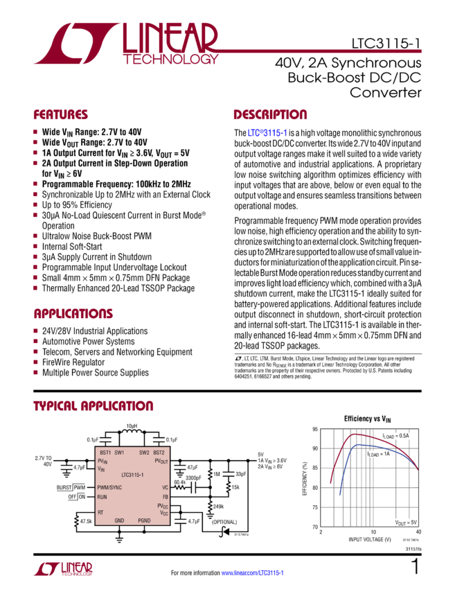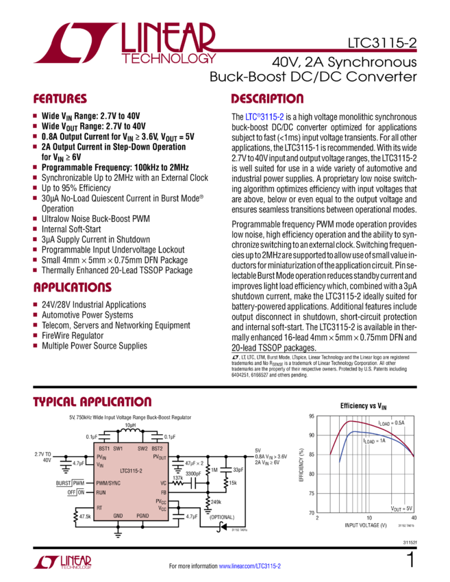 40V, 2A Synchronous Buck-Boost DC/DC Converter