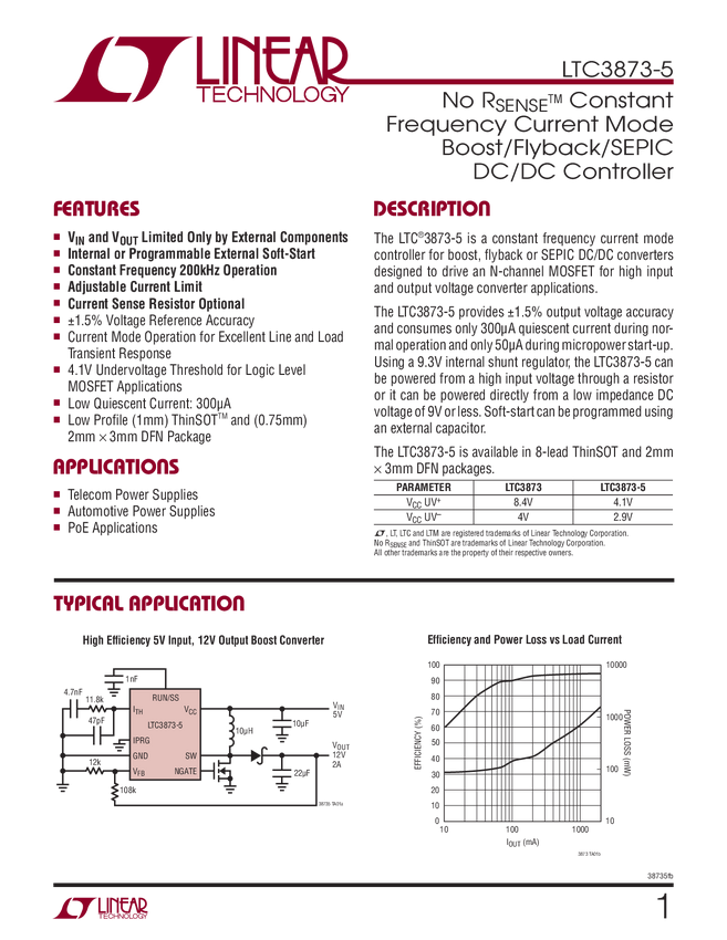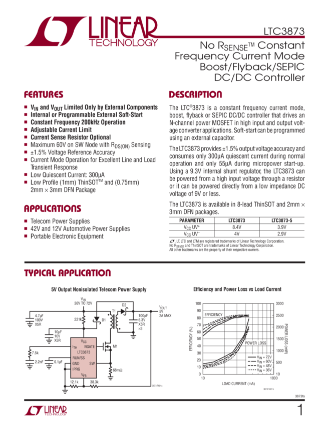 No RSENSE Constant Frequency Current Mode Boost/Flyback/SEPIC DC/DC Controller