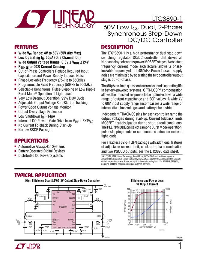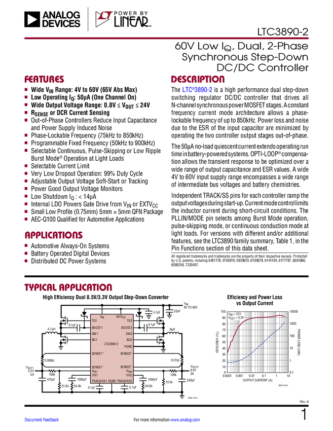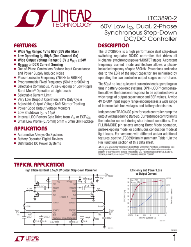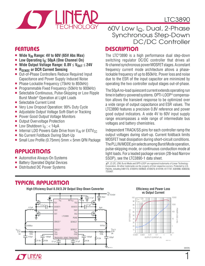 60V Low IQ, Dual, 2-Phase Synchronous Step-Down DC/DC Controller