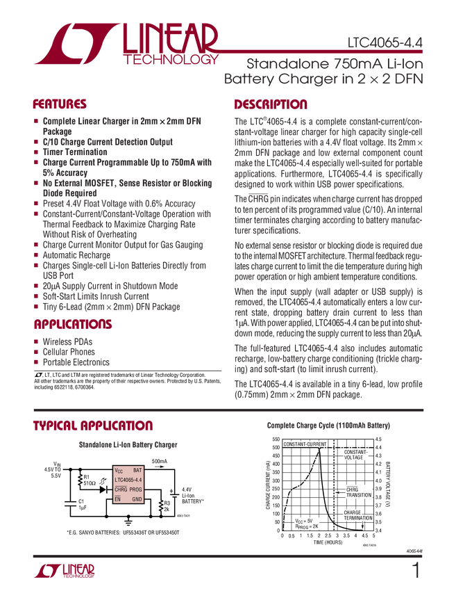 Standalone 750mA Li-Ion Battery Charger in 2 × 2 DFN