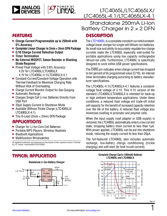 LTC4065LLTC4065LX LTC4065L-4.1LTC4065LX-4.1