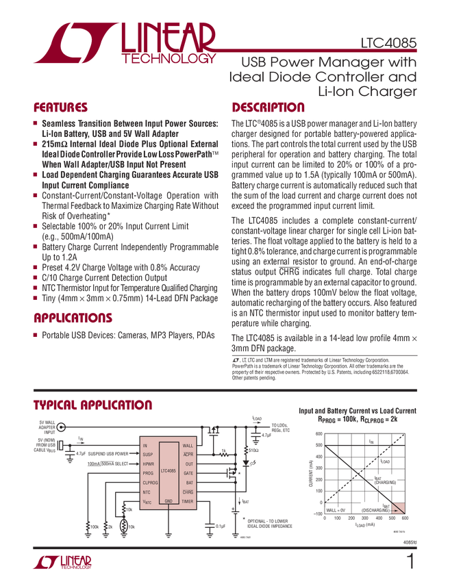USB Power Manager with Ideal Diode Controller and Li-Ion Charger