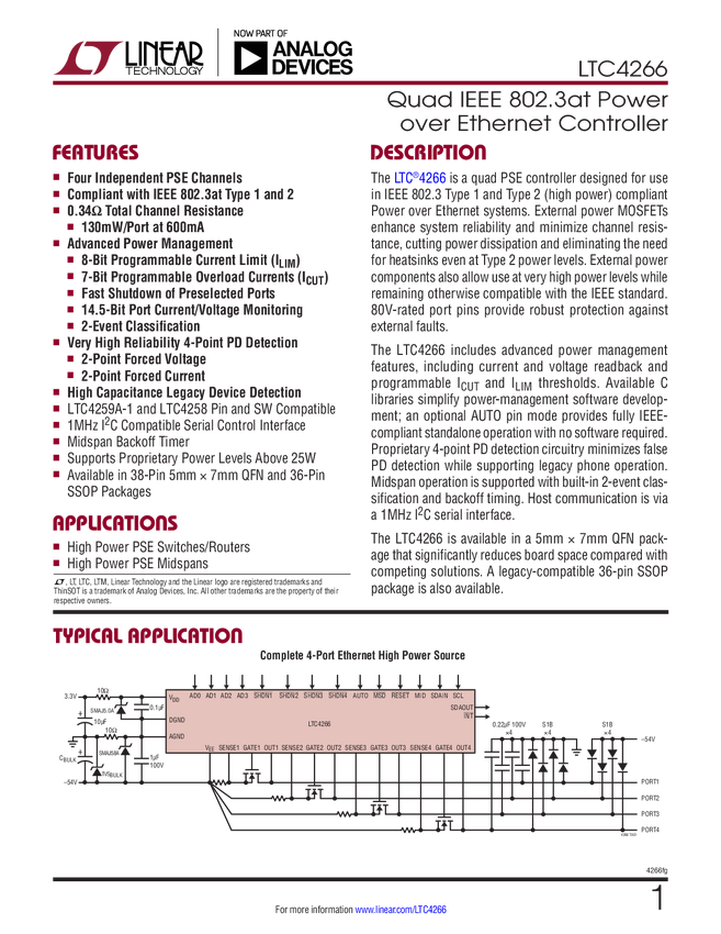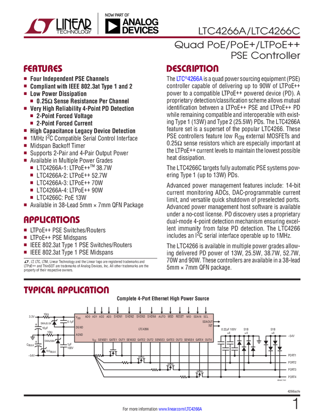 Quad PoE/PoE+/LTPoE++ PSE Controller