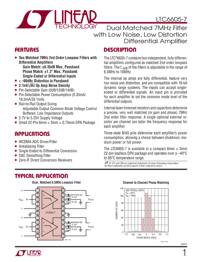 Dual Matched 7MHz Filter with Low Noise, Low Distortion Differential Amplifier