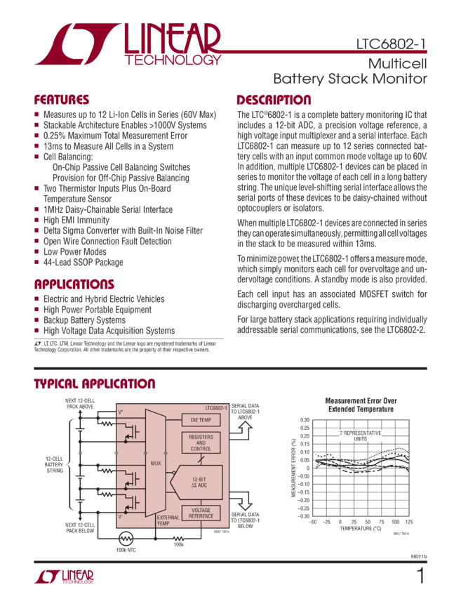 12 Channel Multicell Battery Monitor with Addressable Interface, Generaion 1