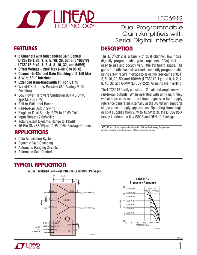 Dual Programmable Gain Amplifiers with Serial Digital Interface