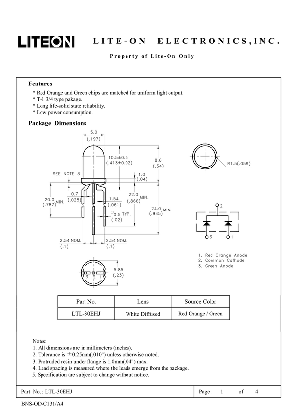 Dioda LED THT Lite-On LTL30EHJ LTL30EHJ, 5 mm, 1 szt.