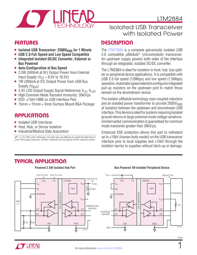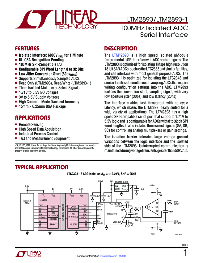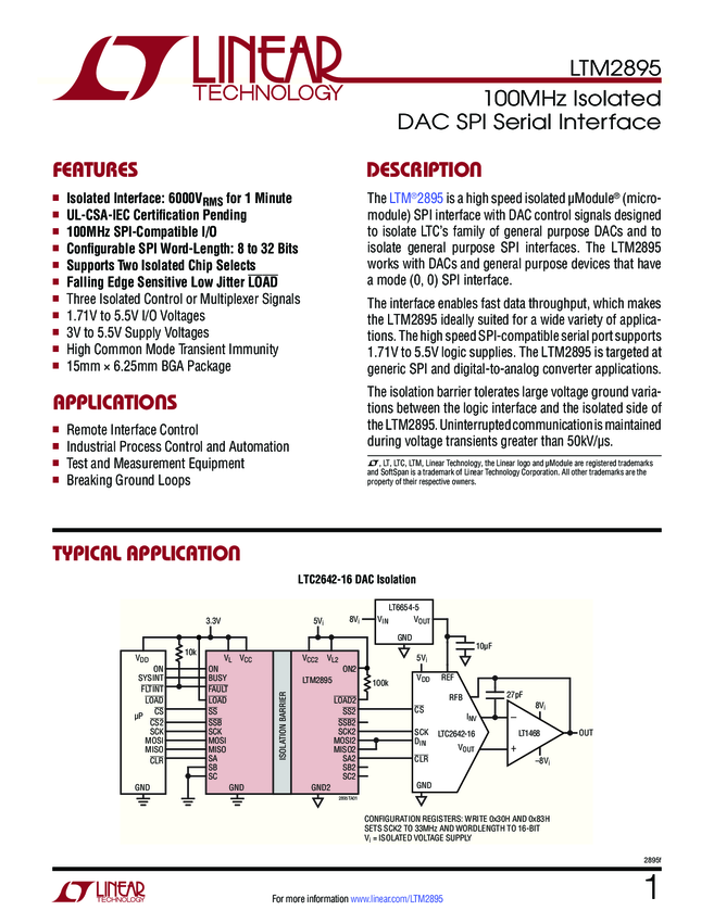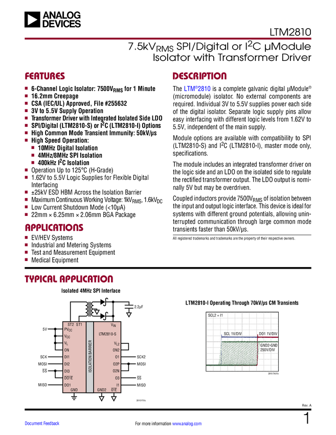 7.5kV SPI/Digital or IC µModule Isolator with Transformer Driver