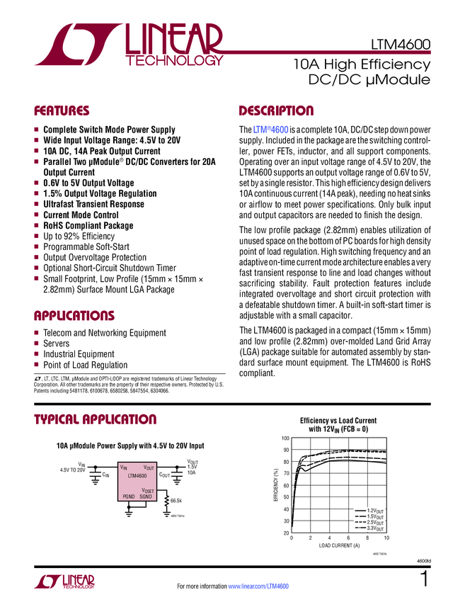 10A, 28V High Efficiency DC/DC µModule (Power Module)