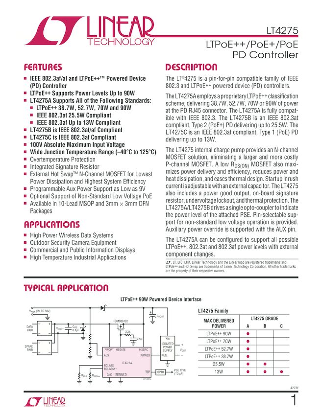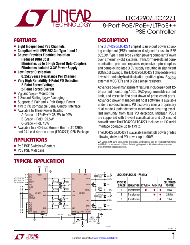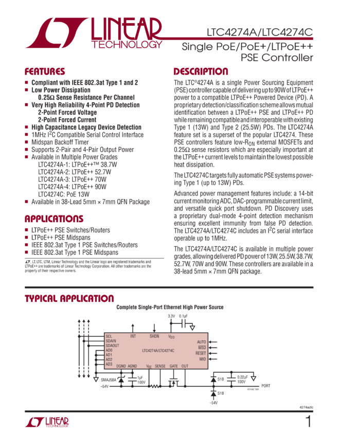 Single PoE/PoE+/LTPoE++ PSE Controller