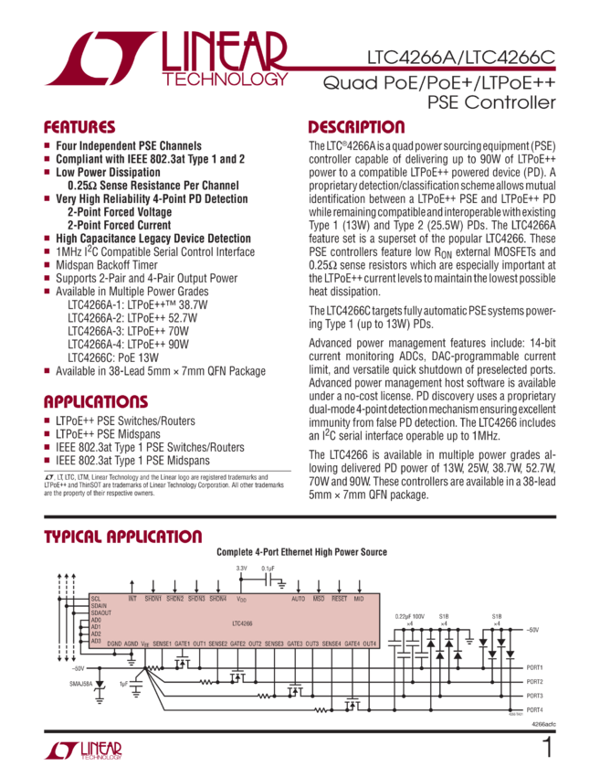 Quad PoE/PoE+/LTPoE++ PSE Controller