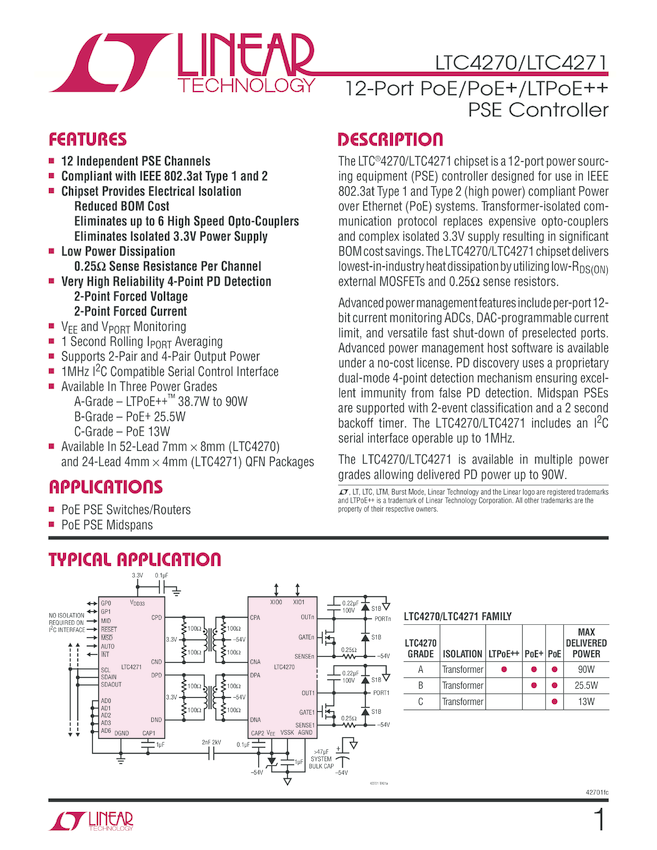 12-Port PoE/PoE+/LTPoE++ PSE Controller