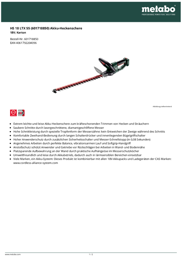 Metabo HS 18 LTX 55 akumulatorowy Nożyce do żywopłotu bez akumulatora 18 V