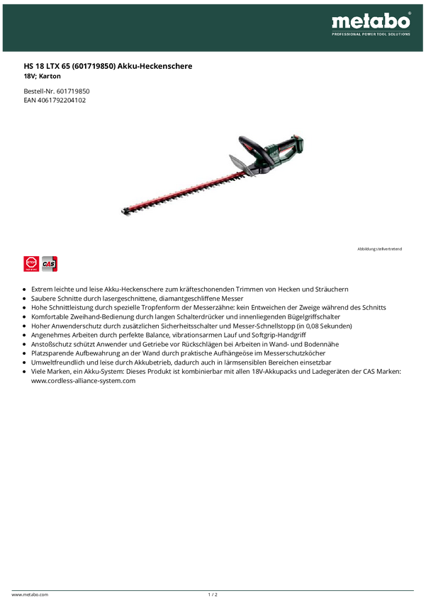 Metabo HS 18 LTX 65 akumulatorowy Nożyce do żywopłotu bez akumulatora 18 V