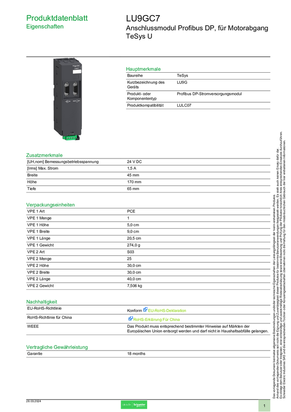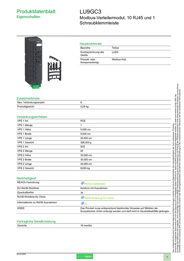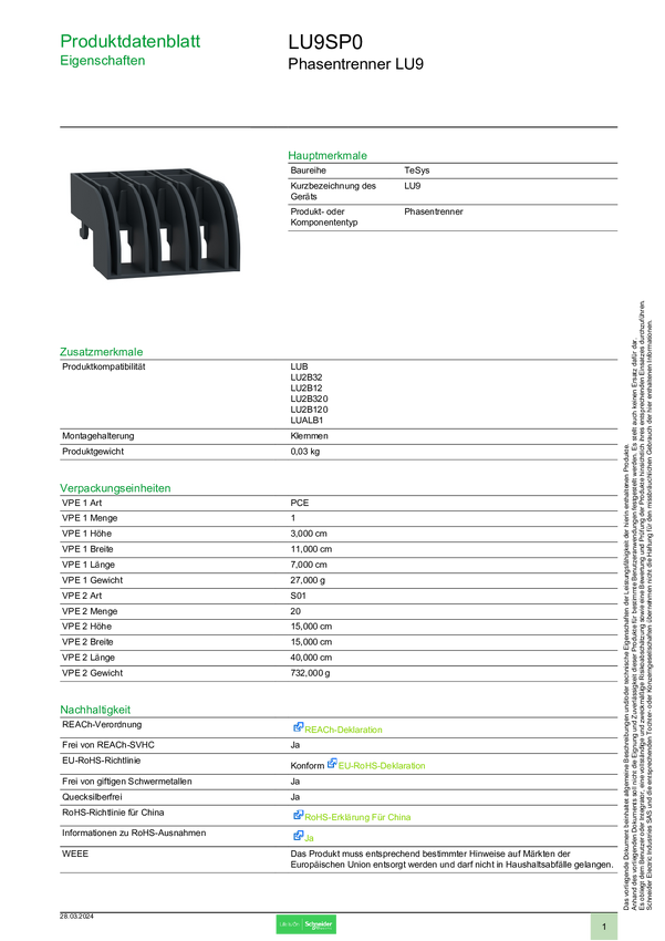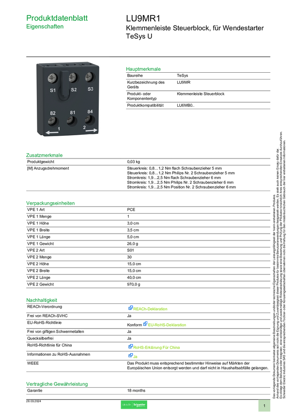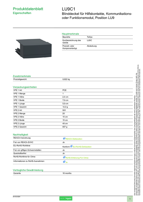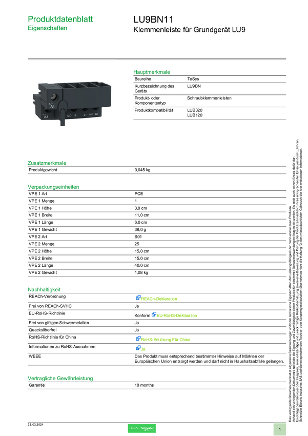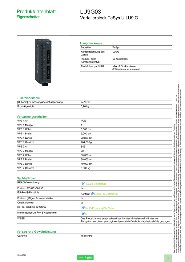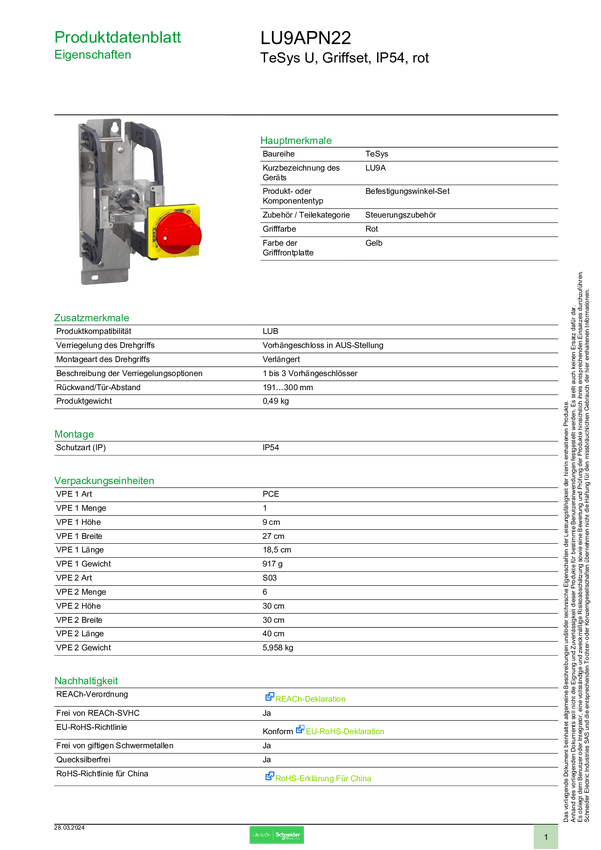 Schneider Electric LU9G03 LU9G03 Akcesorium do wyłącznika mocy 1 szt.
