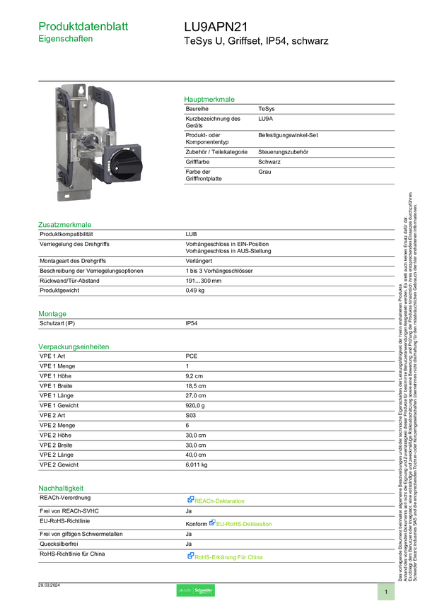 Schneider Electric LU9G02 Akcesorium do wyłącznika mocy 1 szt.