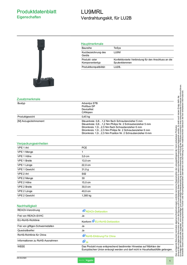 Schneider Electric LU9MR1 Akcesorium do wyłącznika mocy 1 szt.