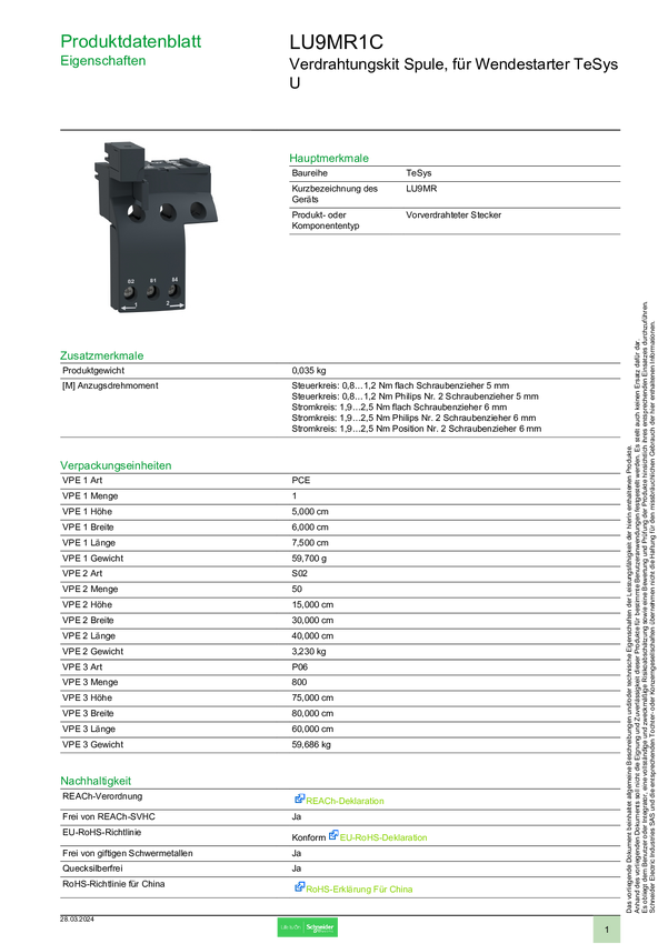 Schneider Electric LU9MR1C Akcesorium do wyłącznika mocy 1 szt.